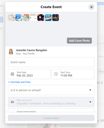 Create event inside fb group